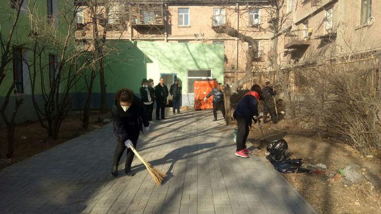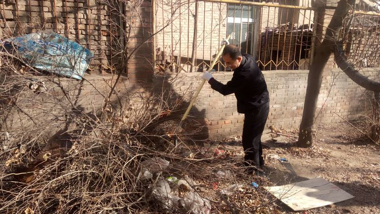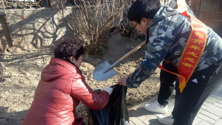看安馨養(yǎng)老服務(wù)中心后院里參加清掃衛(wèi)生的青年團員志愿們拿著笤帚、鐵鍬、鋸等用具。開始了緊張的忙碌,鋸枯樹枝的,清掃院落的,清倒垃圾的,大家分工合作,經(jīng)過了一上午的清掃整理,整個院落更加的干凈整潔了。