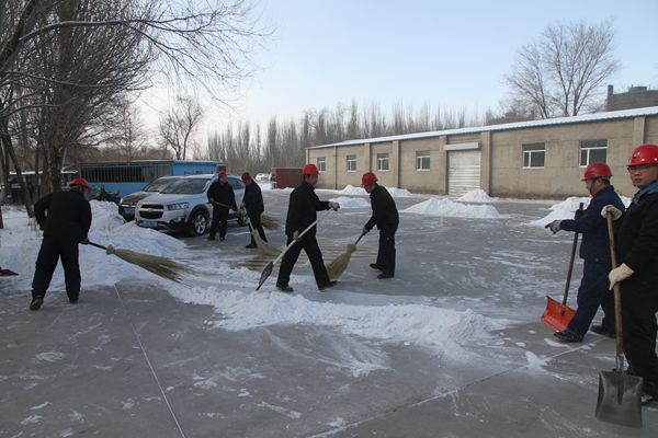 14日一大早,公司機關及各基層廠隊干部職工都積極投身到掃雪行動中。雖然室外氣溫很低,許多人的手和臉也被凍得通紅,然而,這一切絲毫沒有影響大家的勞動熱情和效率。職工們團結協(xié)作、井然有序,揮舞著鐵鍬和笤帚,鏟的鏟、掃的掃,干得熱火朝天,形成了一道美麗的風景線!經(jīng)過大家一個多小時的努力,各廠區(qū)出入口、主干道等處積雪被全部鏟除、掃凈,確保了行車道路通暢,為公司安全生產(chǎn)和職工出行掃除了障礙。